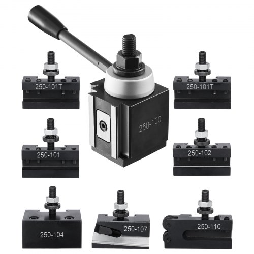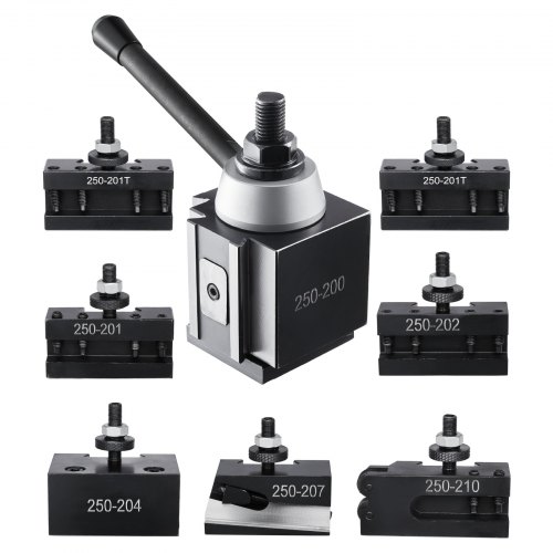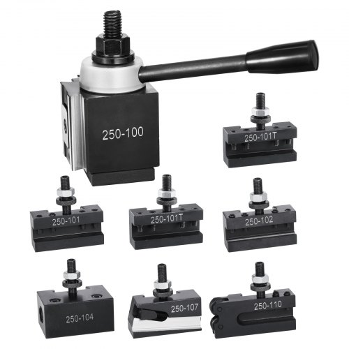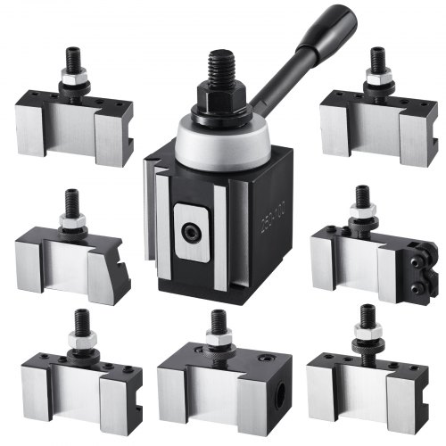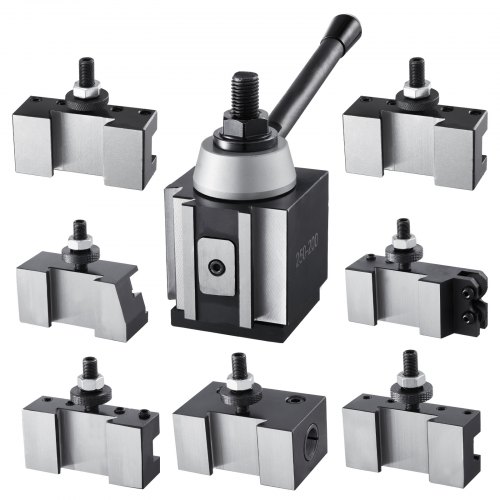 VEVOR Set di Portautensili a Cambio in Acciaio Resistente, 8 Pezzi, Set di Attrezzi a Cambio Rapido, Portautensili a Cuneo per Tornitura, per Mini Torni per Metallo, Oscillazione 254-381 mm