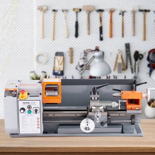 VEVOR Tornio per Metalli, 210 x 370 mm, Tornio di Precisione da Banco, Variabile Velocità 2500 Giri al Minuto, con Mandrino Ingranaggio 550 W per Elaborare Metalli Morbidi Legno Plastici