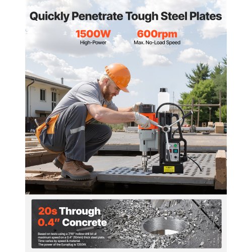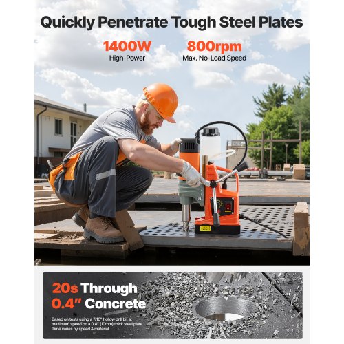 VEVOR Trapano Magnetico da 1450 W Trapano a Colonna Elettrico Portatile, Diametro di Foratura 40 mm 12500 N 800 giri/min con Velocità Variabile, Macchina per Perforazione per Qualsiasi Superficie