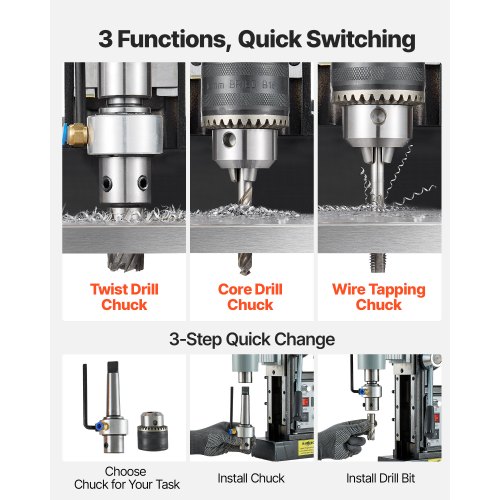 VEVOR Trapano Magnetico 1550 W, Diametro di Foratura 60 mm, Potenza 13000 N Corsa max. 200 mm con Cono Morse Velocità Regolabile, Trapano a Colonna per Superfici Metalliche, Fai-da-te