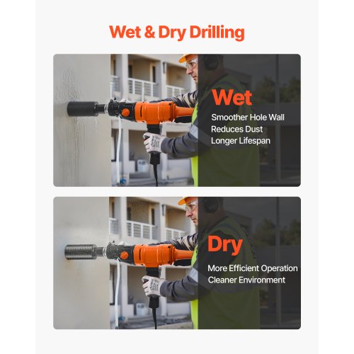 VEVOR Carotatrice per Calcestruzzo, Diametro di Foratura 200 mm Trapano a Carotaggio Portatile per Calcestruzzo a Secco e a Umido con 4 Punte da Trapano, 1000/2250 giri/min a 2 Velocità 1500 W
