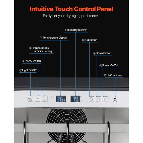 VEVOR Armadio per Stagionatura della Carne da 45 kg, Armadietto per Essiccazione della Carne con Controllo Preciso della Temperatura e dell'Umidità, Macchina per Stagionatura della Bovina per Cucina