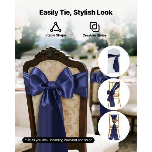 VEVOR Fasce per Sedie in Raso con Fiocchi, Fasce per Sedie per Legare, Nastri per Sedia Fiocchi di Nozze per Matrimoni, Feste, Banchetti, Coprisedie per Banchetti, 275x17 cm, 50 Pezzi, Blu Navy