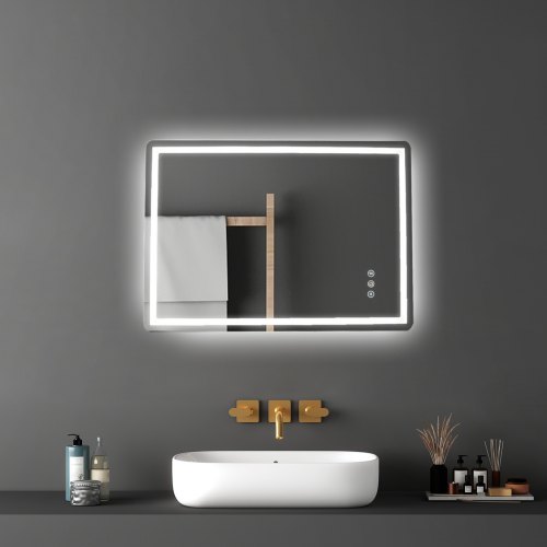 VEVOR Specchio da Bagno a LED 60 x 80 cm Montaggio a Parete con Illuminazione Frontale e Retroilluminata, Specchio Antiappannamento con Memoria con Luci, Specchio Dimmerabile con Temperatura 3 Colori