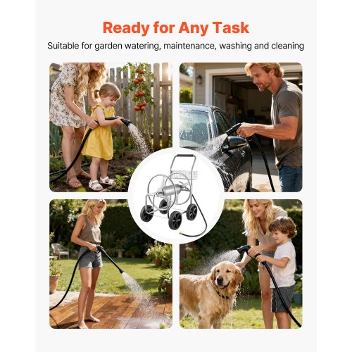 VEVOR Carrello avvolgitubo, può contenere fino a 250 piedi di tubo da 5/8", carrelli per tubi dell'acqua da giardino, strumenti mobili con 4 ruote, piantagione da esterno in acciaio verniciato a polve