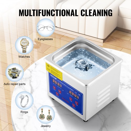VEVOR Pulitore a Ultrasuoni Vassoio Display Digitale in Acciaio Inox Capienza 2 Litri con Riscaldamento Tempo Temperatura Regolabile, Macchina Pulitrice a Ultrasuoni per Gioielli Occhiali Laboratorio