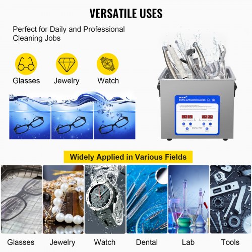 VEVOR Pulitore a Ultrasuoni Digitale in Acciaio Inox Capacità 3 Litri con Riscaldamento Tempo Temperatura Regolabile, Macchina Pulitrice a Ultrasuoni da Gioielli Occhiali Orologi Laboratorio Clinico