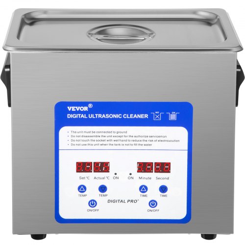 VEVOR Pulitore a Ultrasuoni Display Digitale in Acciaio Inossidabile Capienza 6 Litri con Riscaldamento Tempo Temperatura Regolabile, Dispositivo di Pulizia a Ultrasuoni per Gioielli Occhiali Orologi