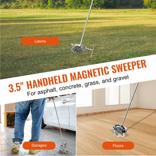 VEVOR Spazzatrice Magnetica Manuale Asta Lunghezza 635 mm Regolabile tra 210-845 mm, Scopa Magnetica per Pavimenti Forza Magnetica Max. 15,9kg Portatile, Raccoglitore Spazzatrice di Trucioli Metallici