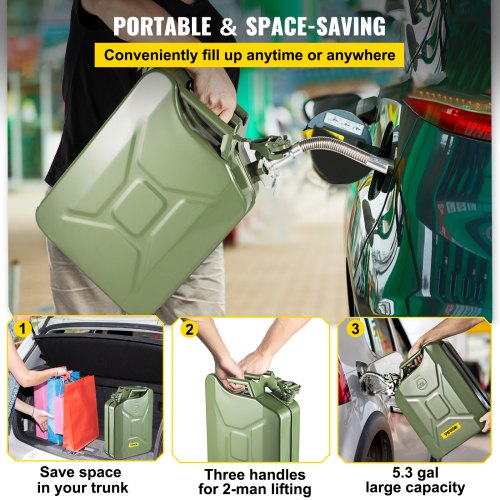 VEVOR Tanica per Carburante 5,3 galloni / 20 Litri Portatile con Sistema di Beccuccio Flessibile, Antiruggine e Resistente al Calore, per Auto, Camion, Serbatoio Trasferimento Carburante 2 pezzi