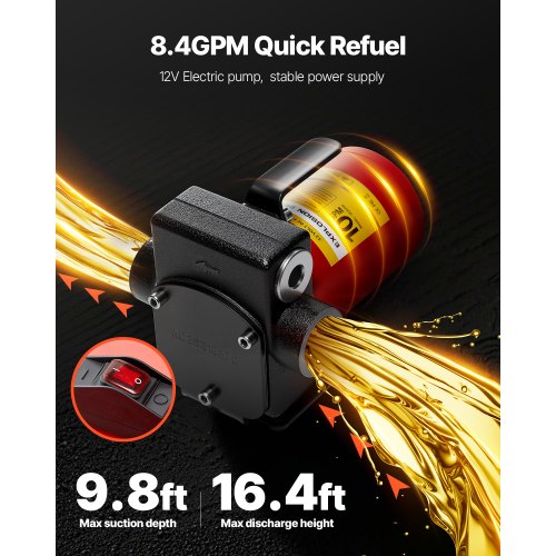 VEVOR Serbatoio Carburante, per Benzina e Gasolio con Pompa Elettrica, Serbatoio Stoccaggio Portatile con 2 Ruote Tubo Flessibile, Contenitore Benzina 136 L, Flusso Massimo 32L Ogni Minuto