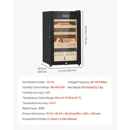 VEVOR Humidor Elettrico per Sigari da 70 Litri, Capacità 400 pezzi, Humidor per Sigari con Raffreddamento a Compressore, Armadio 4 Livelli, Controllo Costante di Umidità e Temperatura