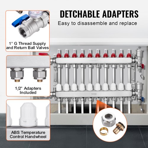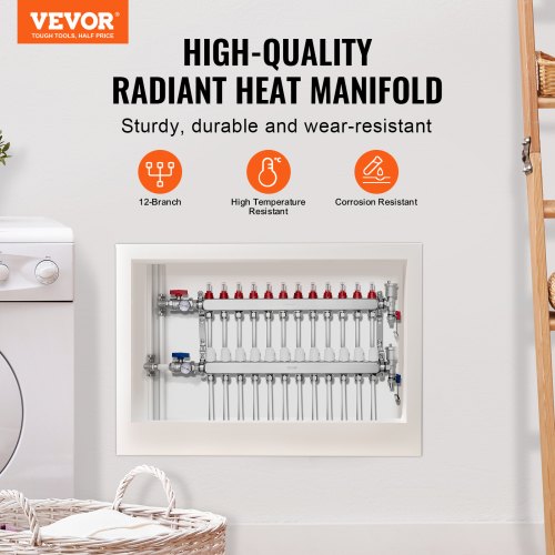 VEVOR Collettore di Riscaldamento Radiante a 6 Rami, Collettore per Tubi PEX da 12,7 mm in Acciaio Inossidabile PEX, con Adattatori da 12,7 mm, per Pavimento Radiante Idronico, Kit Collettore PEX