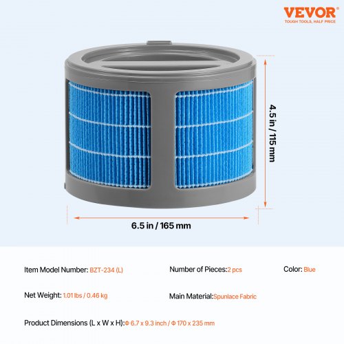VEVOR Filtro di Ricambio per Ventilatore a Torre, Filtro di Ricambio φ188 x 127 mm per Purificatore d'Aria Multistrato con HEPA per Catturare Polline, Peli di Animali, Fumo Odori Nocivi
