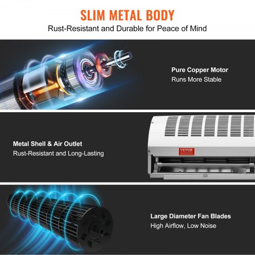 VEVOR Barriera d'aria per interni commerciale da 0,9m 2 velocità 2038 m³/h, Barriere d'aria per porte montate a parete, Ventilatore per porta da interni con finecorsa per carichi pesanti