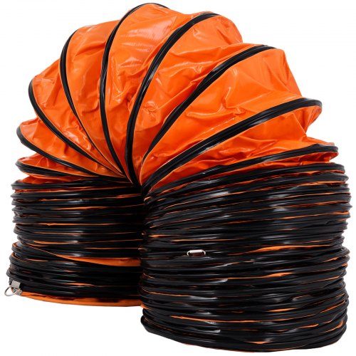 VEVOR Tubo Flessibile per Condotto Flessibile in PVC da 32 piedi/9,8 m, Tubo di Ventilazione Diametro 12 Pollici, Tubo Flessibile a Colore di Arancione, Corde Regolabili, Tubo con Anelli a Forma di D