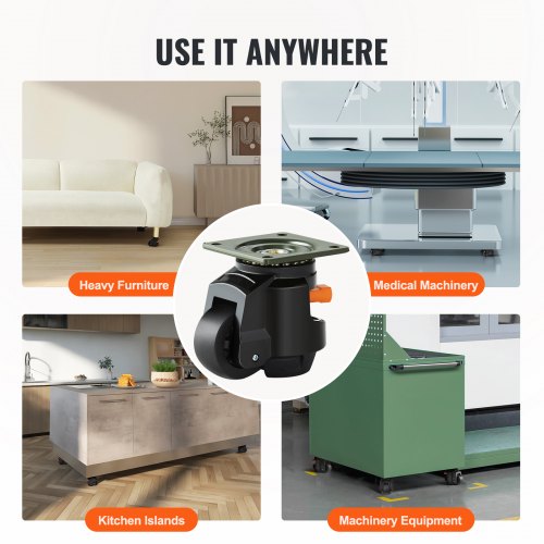 VEVOR Ruote Girevoli per Mobili Set di 4 Ruote Livellanti per Carichi Pesanti Capacità di Carico Max. 1000 kg Diametro 63,5 mm, Ruote Girevoli Regolabili con Piedini per Mobili Banco di Lavoro 4 Pezzi