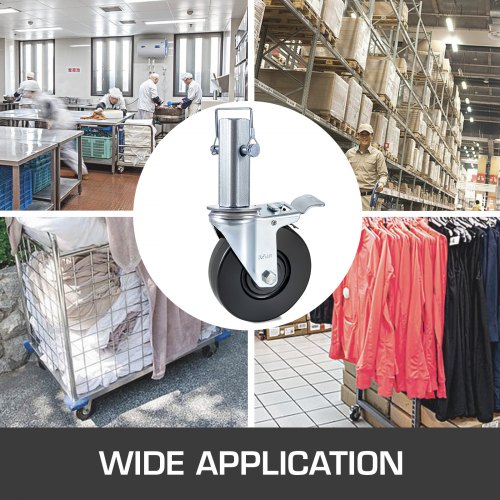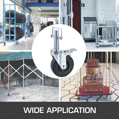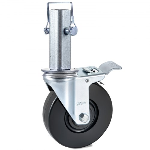 VEVOR Ruote Girevoli in Poliuretano, Nucleo in Ferro da 12,7 cm, Ruote con Stelo Girevole con Doppio Freno di Bloccaggio, Piedini Regolabili, Capacità di Carico 200 kg per Ruota, Confezione da 4