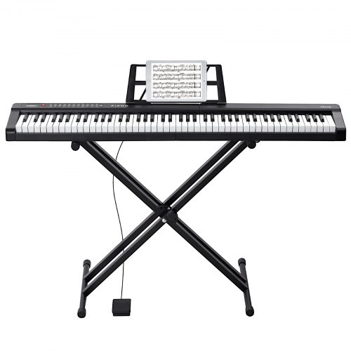 VEVOR Tastiera Pianoforte Digitale, 88 Tasti Semi-pesati, Set Tastiera Elettrica con Supporto Regolabile, Altoparlanti Incorporati, Pedale Sustain, Cuffie, Bluetooth MIDI USB, per Principianti