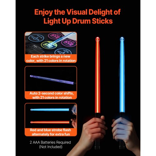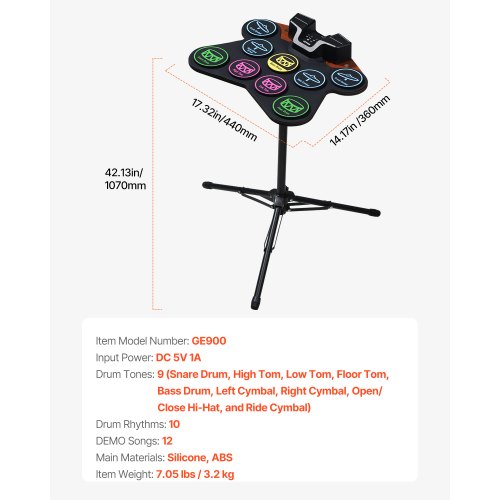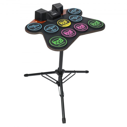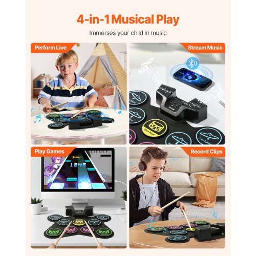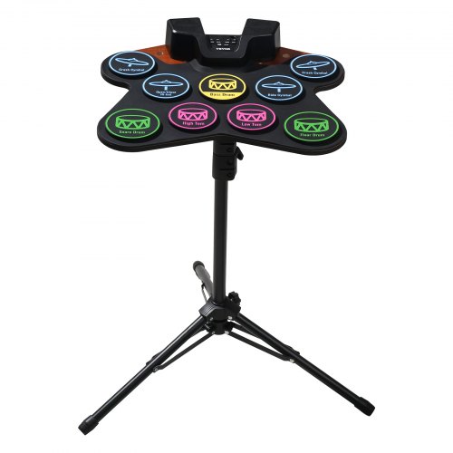 VEVOR Batteria Elettrica, 9 Pad, Pad per Esercizi Arrotolabile, Batteria Elettronica con Jack per Cuffie, Supporto, Bacchette Luminose, Doppi Altoparlanti Integrati, Strumento Giocattolo per Bambini