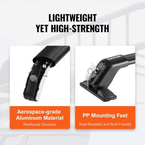 VEVOR Barre Trasversali Portapacchi per Veicoli, Capacità di Carico 118kg, Barre Trasversali Antiruggine in Alluminio con Serrature, Portapacchi per Bagaglio Valigie a Carico sul Tetto dell'Auto