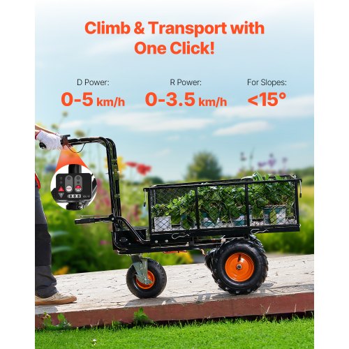 VEVOR Carriola Elettrica Carrello da Giardino Motorizzato 2 Ruote 500 W Ruota Larghezza 40 cm Carico 260 kg, Carrello Multiuso a Caricamento Facile per Fattoria, Prato, Giardinaggio, Magazzino