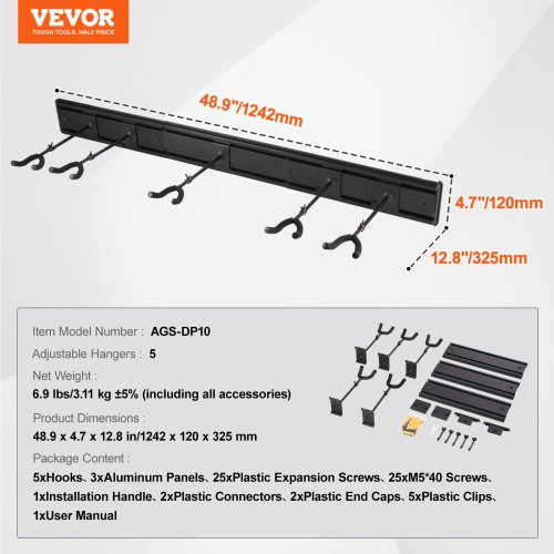 VEVOR Supporto per Chitarra a 5 Spazi, Espositore per Chitarre Molteplici a Parete Cremagliera, Ganci Girevoli 270° Pannelli in Alluminio Maniglia di Installazione, Chitarra Acustica Basso Elettrico