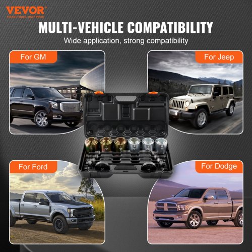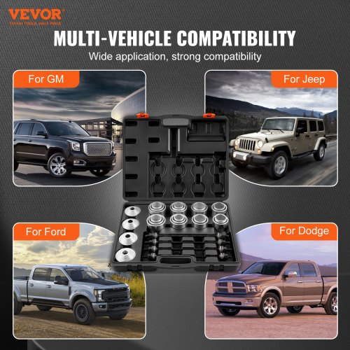 VEVOR Kit Manicotto di Trazione e Pressione da 28 pezzi, Set di Rimozione e Installazione Cuscinetti a Boccola in Acciaio, con Custodia per il Trasporto, Compatibilità Multi-Veicolo per Motori
