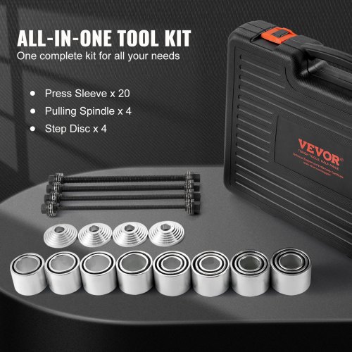 VEVOR Kit Manicotto di Trazione e Pressione da 27 pezzi, Set di Rimozione e Installazione Cuscinetti a Boccola in Acciaio, con Custodia per il Trasporto, Compatibilità Multi-Veicolo per Motori