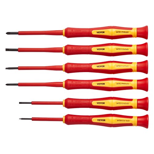 VEVOR Set di Cacciaviti Isolati, 6 Pezzi, Set di Cacciaviti Elettrici da 1000 V Set di Utensili per Elettricisti Isolati, con Punte Magnetiche a Taglio Phillips, Cacciavite Rotante a 360 Gradi e Borsa