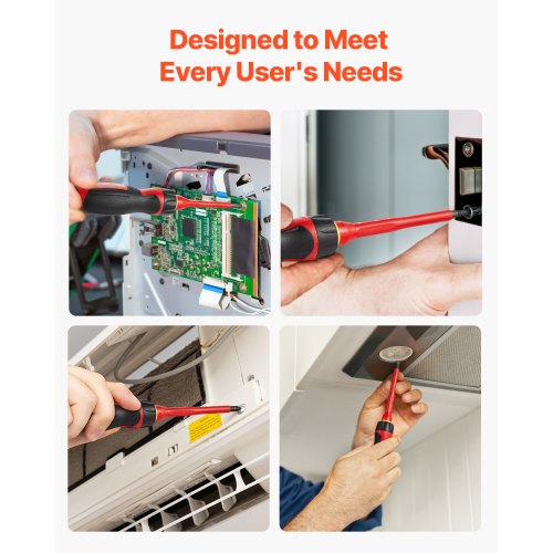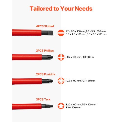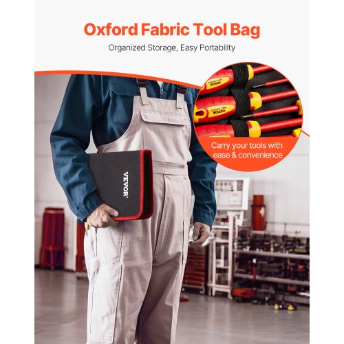 VEVOR Set Cacciaviti Isolati 235 x 140 x 52 mm Set di Cacciaviti Elettrici, 13 Pezzi, kit di Utensili Isolati per Elettricisti, con Punte Magnetiche Phillips, a Taglio e Torx Pozidriv