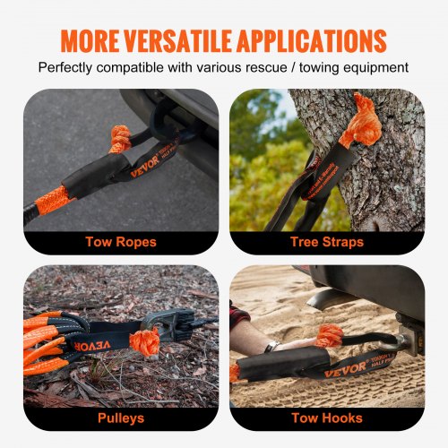 VEVOR Grilli sintetici morbidi, 12,7x558,8 mm, Corda per grilli da traino per recupero 2 pezzi, Resistenza alla rottura 20T, Borsa di stoccaggio per UTV, ATV, camion, Jeep, veicoli fuoristrada, Arancione