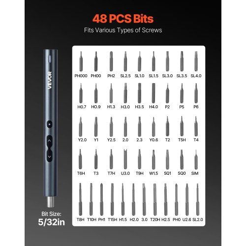 VEVOR Cacciavite Elettrico di Precisione, 48 Punte Magnetiche Mini Cacciavite Elettrico con Scatola di Immagazzinaggio Magnetica, Luce LED e Ricarica di Tipo C, per Riparare Telefoni e Laptop