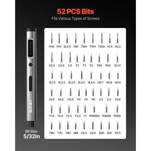 VEVOR Cacciavite Elettrico di Precisione, 52 Punte Magnetiche Mini Cacciavite Elettrico con Scatola di Immagazzinaggio Magnetica, Luce LED e Ricarica di Tipo C, per Riparare Telefoni e Laptop