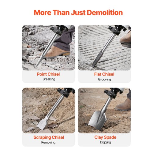 VEVOR Martello Demolitore, Potente Martello Pneumatico Elettrico 2800 W, per Calcestruzzo 1200 BPM con 3 Scalpelli, Vanga per Argilla, Custodia per il Trasporto, Guanti, per Calcestruzzo, Pareti
