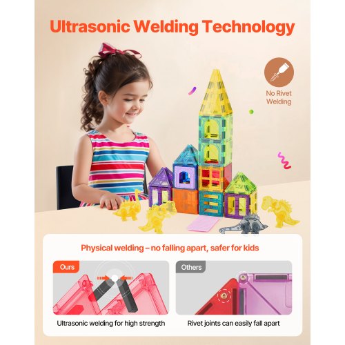 VEVOR Piastrelle Magnetiche, 85 x 25 x 90 mm Blocchi da Costruzione Magnetici per Bambini, 56 Pezzi, Set di Costruzioni Magnetiche con 4 Dinosauri, Giocattoli Educativi Sensoriali STEM da Impilare