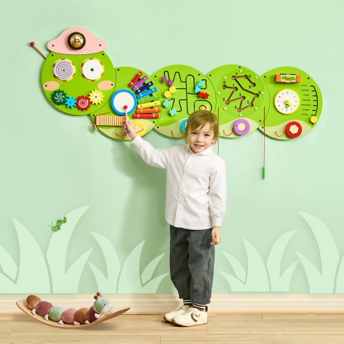 VEVOR Pannelli da Parete per Attività con Bruco, 12Attività, Giocattolo Sensoriale da Parete per Bambini, Attività di Apprendimento Montessori, per Sala Giochi, Asilo Nido 1397 x 425 x 53 mm