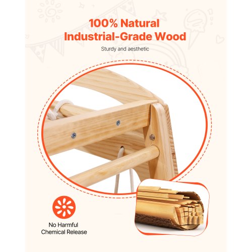 VEVOR Palestra da Interno, Parco Giochi per Bambini, 109 x 120 x 119,5 cm, con Scala in Legno e Corda, Scala a Rete, Altalena, Barra di Scimmia, Scivolo, Parete da Arrampicata, Giocattoli in Legno
