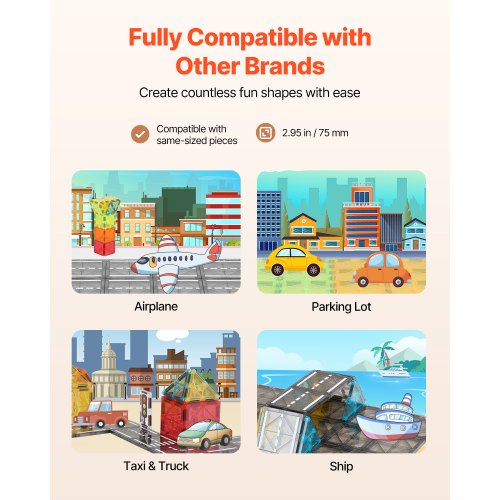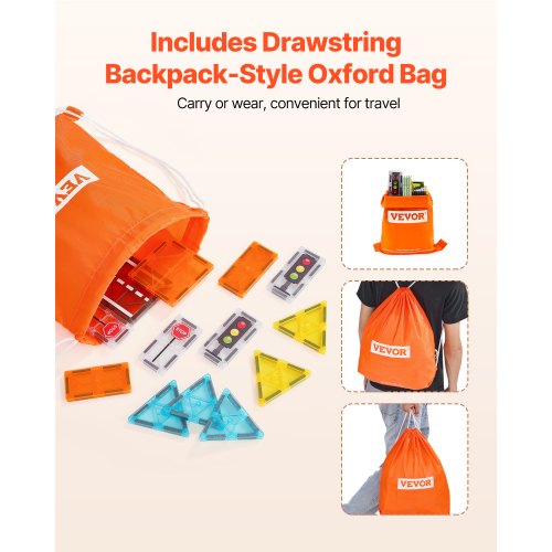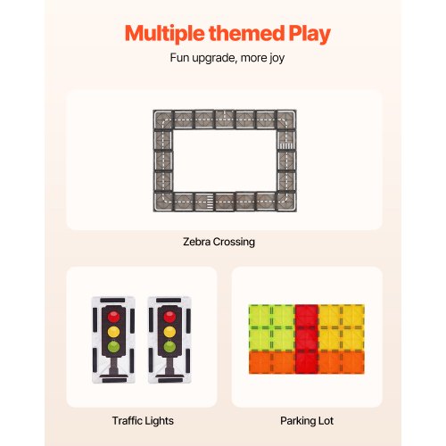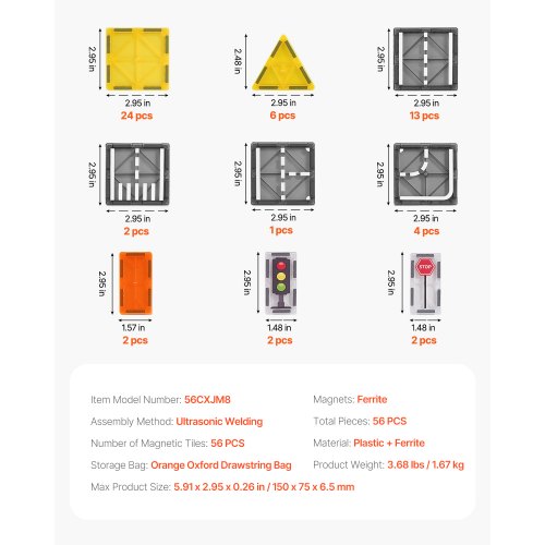 VEVOR Piastrelle Magnetiche 150 x 75 x 6,5 mm Blocchi Magnetici per Costruzioni Stradali per Bambini 56 Pezzi, con Borsa Portaoggetti, Giocattoli Educativi Sensoriali STEM per Costruzione di Città