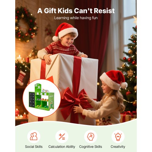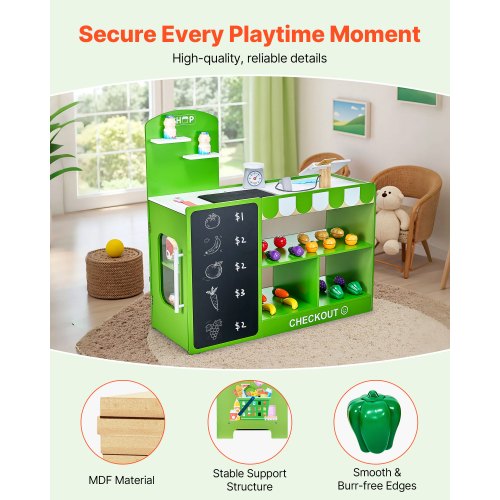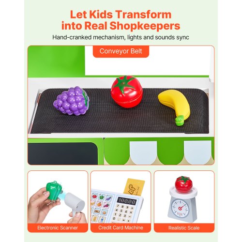 VEVOR Set da Gioco per Bambini in Legno di Alta Qualità 81,5 x 30,7 x 85 cm con Borsa della Spesa, Negozio di Giocattoli con Nastro Trasportatore, Scanner, Registratore di Cassa, Scala Realistica
