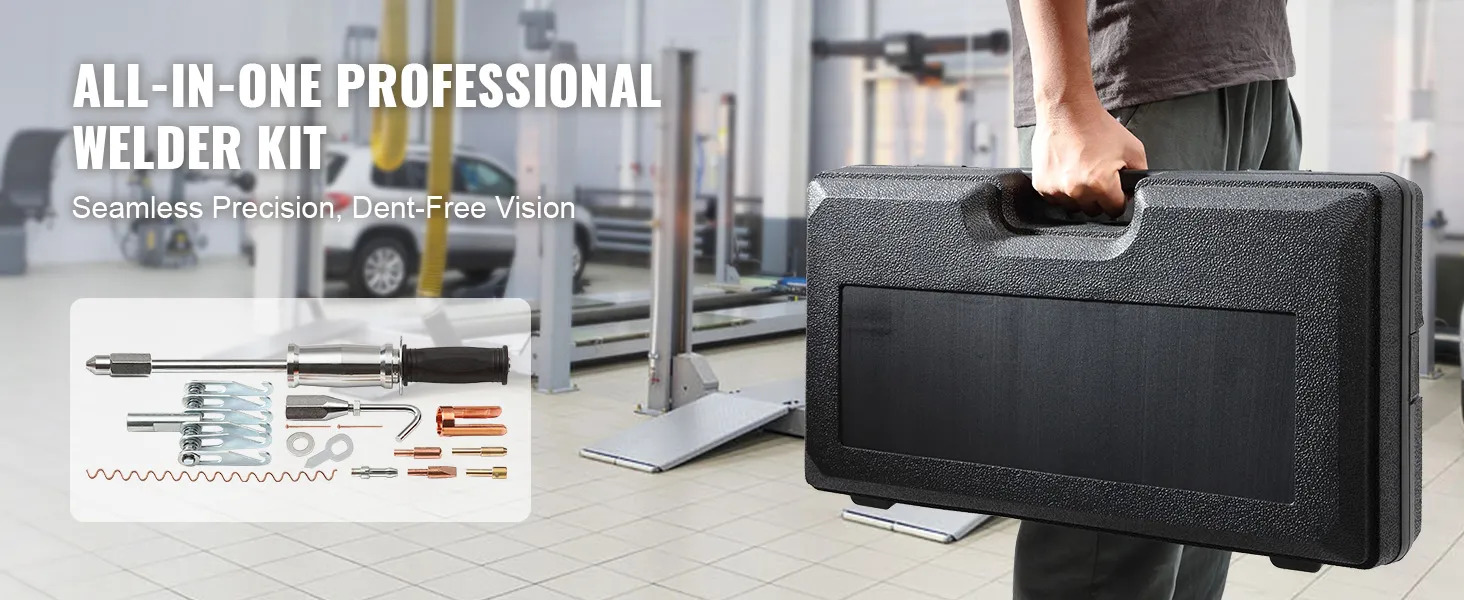 Kit Pratico Tutto in Uno: il kit di riparazione per ammaccature VEVOR include un set completo di accessori che possono essere conservati ordinatamente in una cassetta degli attrezzi. Il suo design compatto e leggero e la maniglia portatile garantiscono che possa essere utilizzato ovunque sia necessario.