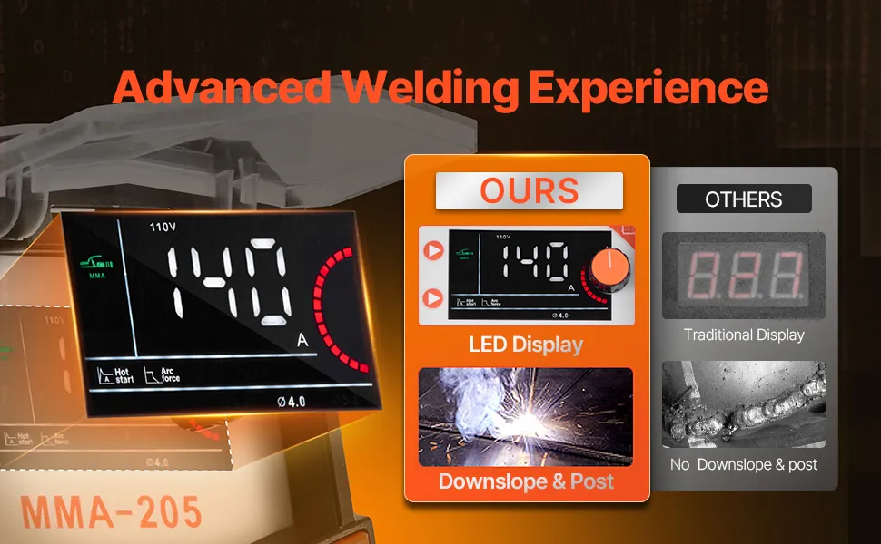 Display LED intelligente: la nostra saldatrice elettrica è dotata di un display LED digitale avanzato, che consente di monitorare chiaramente tutte le impostazioni con facilità. Questo schermo ad alta definizione migliora il controllo visivo e semplifica il flusso di lavoro, rendendo più efficienti le attività di saldatura