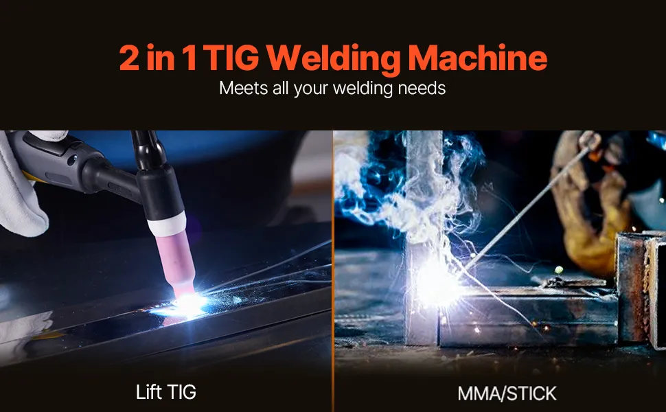 Saldatrice TIG 2 in 1: migliora la configurazione della tua saldatrice con questa versatile saldatrice TIG, dotata di modalità di saldatura Lift TIG e MMA/Stick. Ideale per progetti fai da te domestici, lavori in garage, riparazioni all'aperto, evitare la ruggine dei metalli e manutenzione di attrezzature agricole e stradali