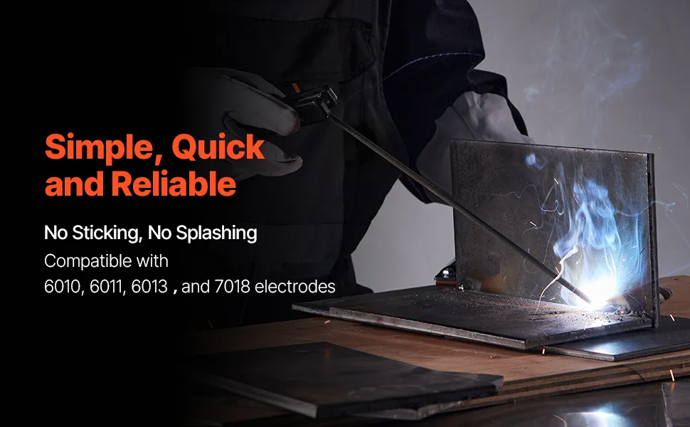 Che tu stia lavorando con acciaio al carbonio, rame, acciaio inossidabile o titanio, questa saldatrice elettrica è all'altezza del compito. Può gestire sia le bacchette di saldatura E7018 che E6013 e, con funzionalità integrate come VRD e protezione da sovracorrente.