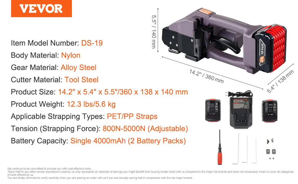 Prestazioni potenti: con una forza di serraggio di 800 N-5000 N e una velocità di reggiatura di 255 mm/s, questo tendireggia elettrico porta a termine il lavoro. La forza di tensione e il tempo di saldatura sono regolabili, garantendo ogni volta una reggiatura stretta e sicura. I tuoi pacchi rimangono al loro posto senza preoccupazioni.