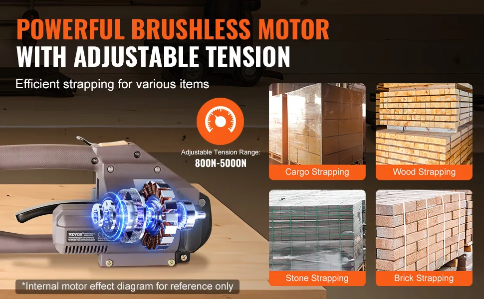 Questo tendireggia elettrico con il suo potente motore brushless offre prestazioni fluide e potenti. È adatto a tutti i tipi di lavori di imballaggio, dalla carta e alluminio all'acciaio e legno.