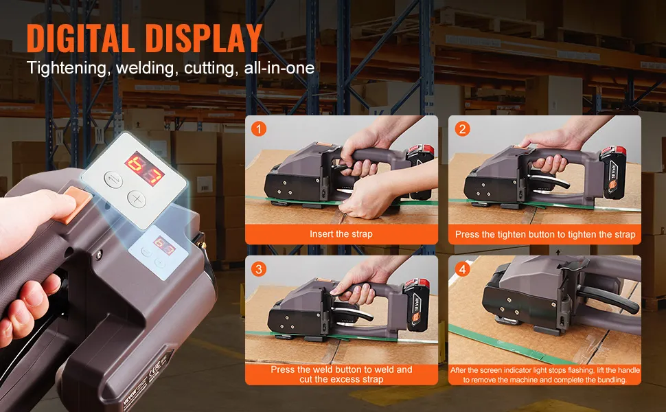 Facile da usare: questa reggiatrice intelligente ha un display digitale per un facile utilizzo. L'avvio con un solo pulsante, il posizionamento rapido e i sensori intelligenti rendono la reggiatura un gioco da ragazzi. Puoi adattarli a diverse dimensioni e forme di merci, rendendo il tuo lavoro più semplice e divertente.