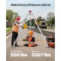 VEVOR Kit Treppiede per Spazi Confinati, Paranco di Sollevamento per Treppiede di Salvataggio per Impieghi Gravosi, Verricello da 1179 kg, Lunghezza Gambe Regolabili da 1,34 a 2,15 m, Cavo da 30 m
