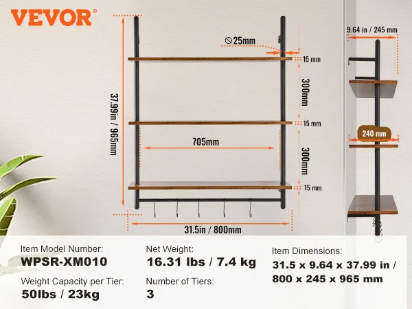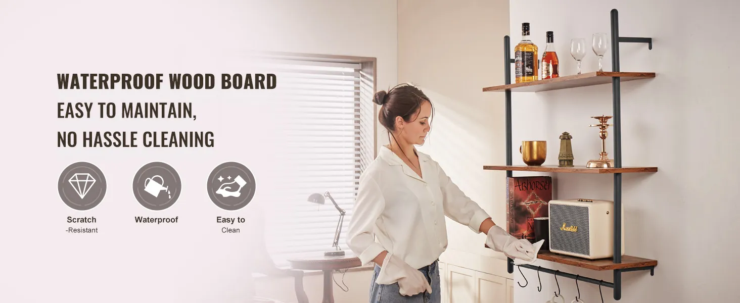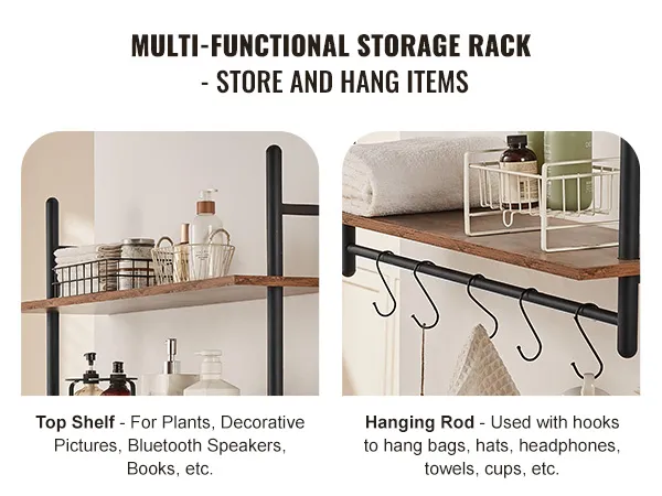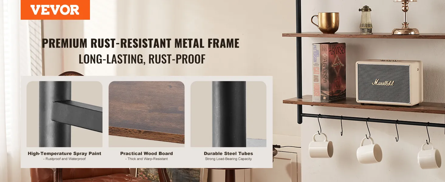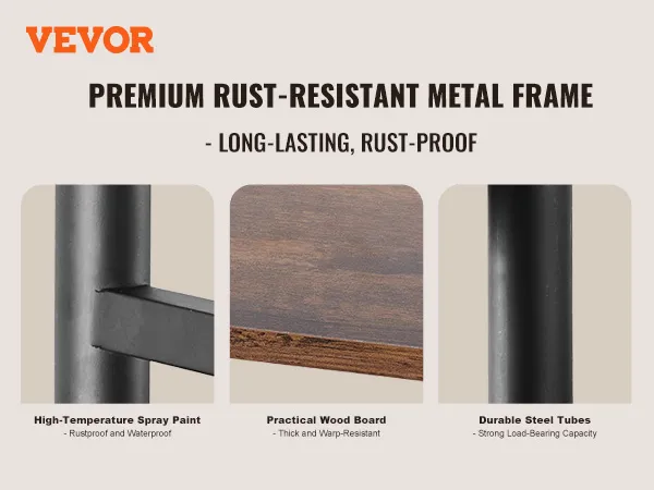 Tubo in acciaio duro: tubo tondo in acciaio al carbonio ∅1", la forte forza portante non è facile da rompere, per offrirti un'esperienza di stoccaggio sicura e stabile. Tavole di legno ispessite da 0,6" per fornirti sufficiente gravità.