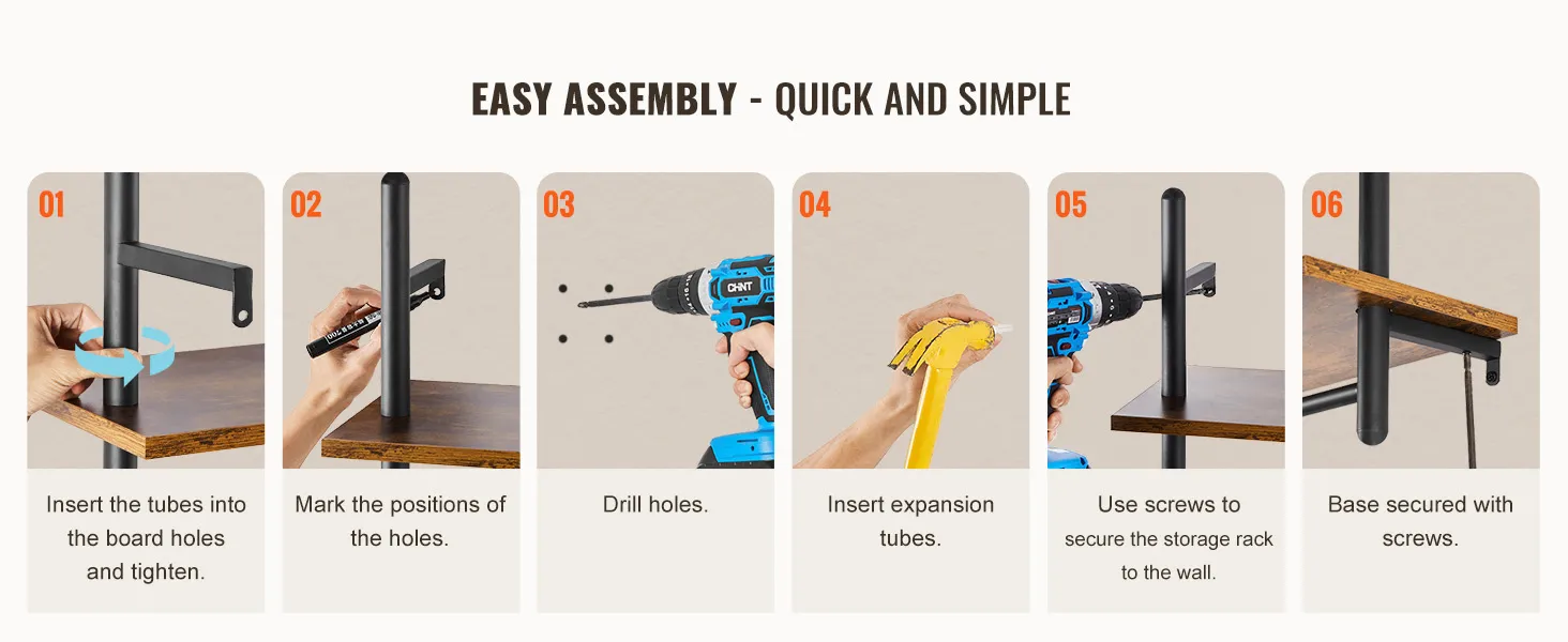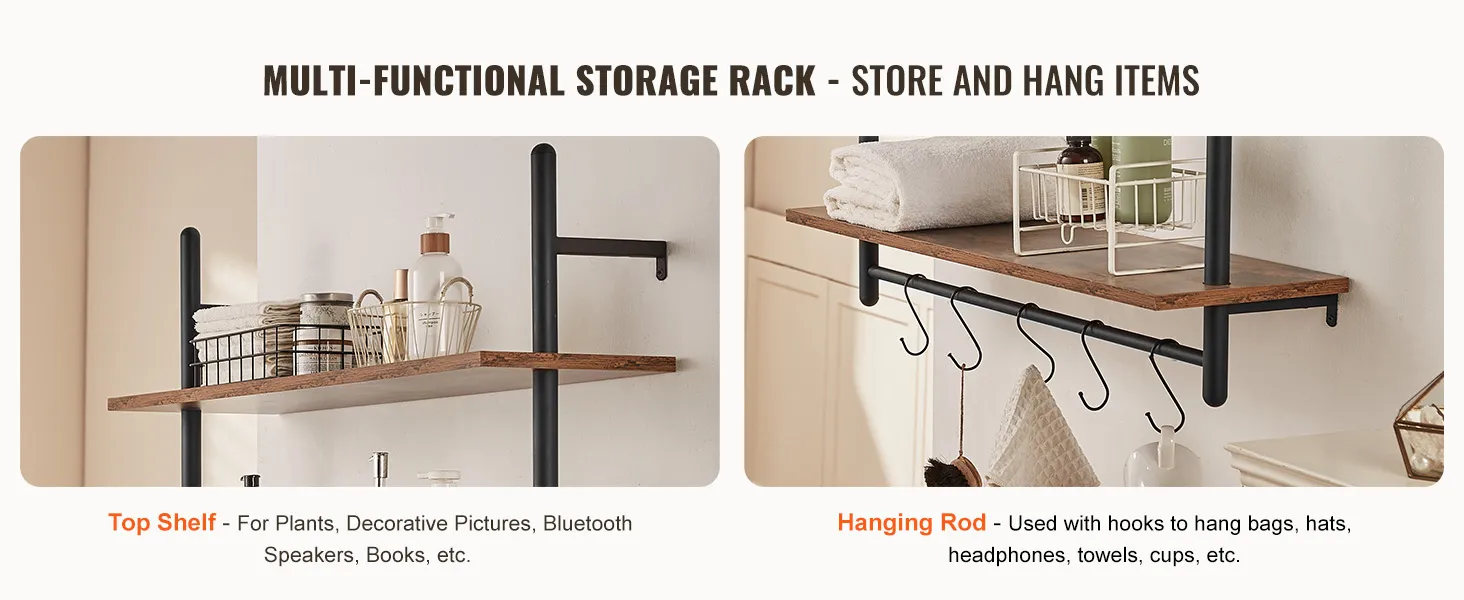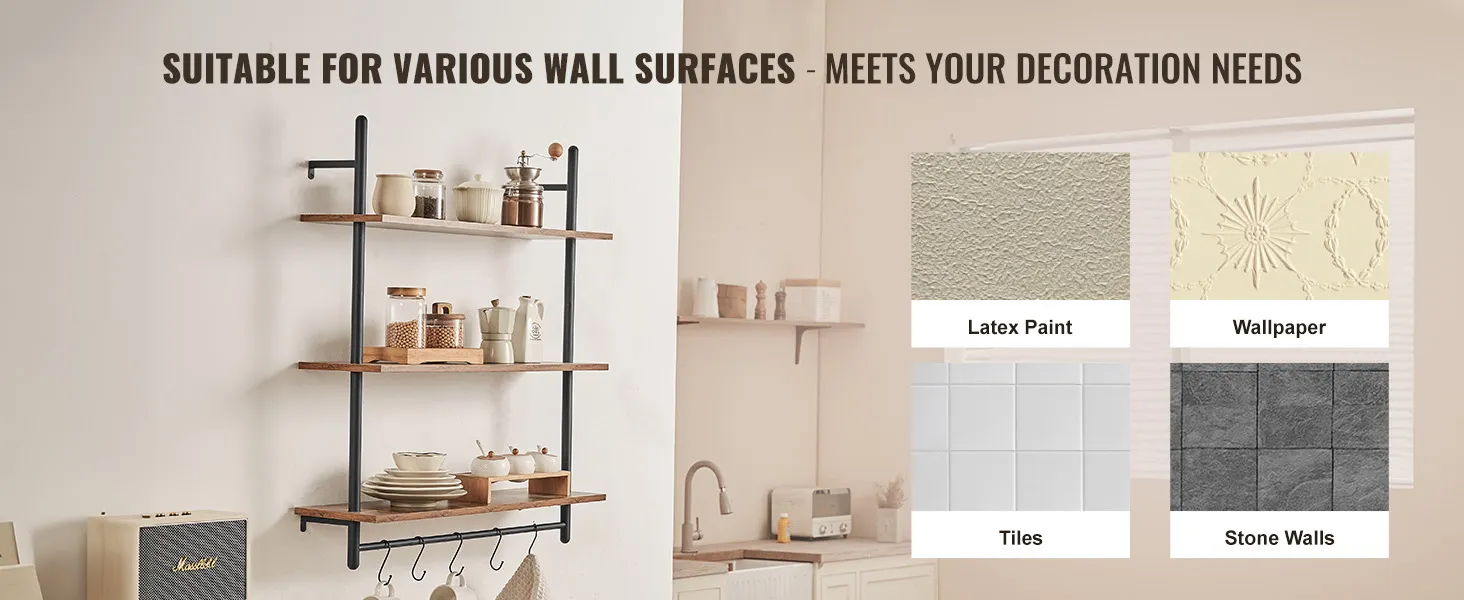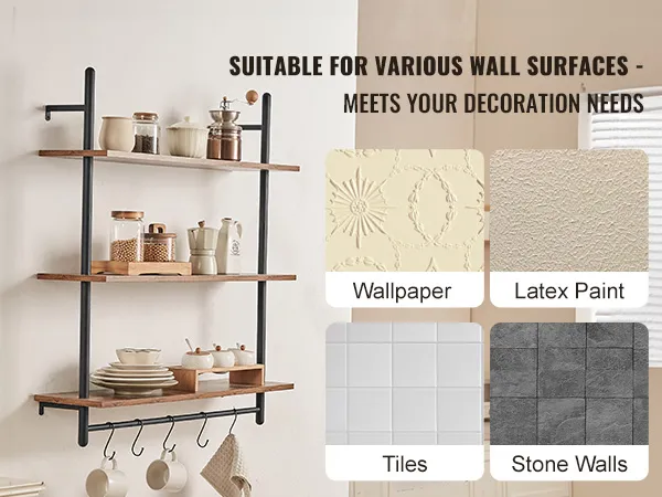 Uso flessibile: la mensola a tubo è progettata per essere flessibile e può essere installata su qualsiasi parete per sfruttare al meglio lo spazio. Che si tratti di un bar da pranzo, di una lavanderia, di un soggiorno o di uno studio.